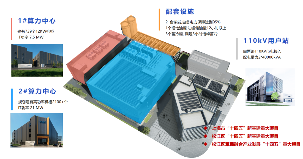 ◆ 机柜功率:8kw~40kw,采用小母线智能配电,支持用户按需定制单柜功率◆ 配电管理:采用2N+1架构,2个110kv变电站外电接入,另配置21台1800KW功率柴发作为应急自备电源,全年供电可靠性达到99.999%以上